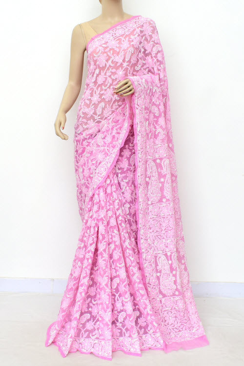 Handcrafted Kamal Full Jaal Chikankari Pink Saree