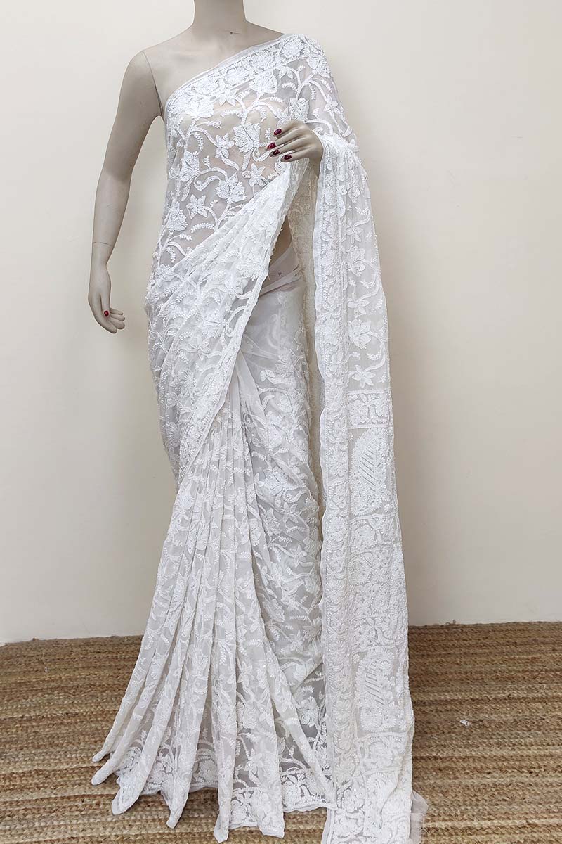 Handcrafted Kamal Full Jaal Chikankari White Saree