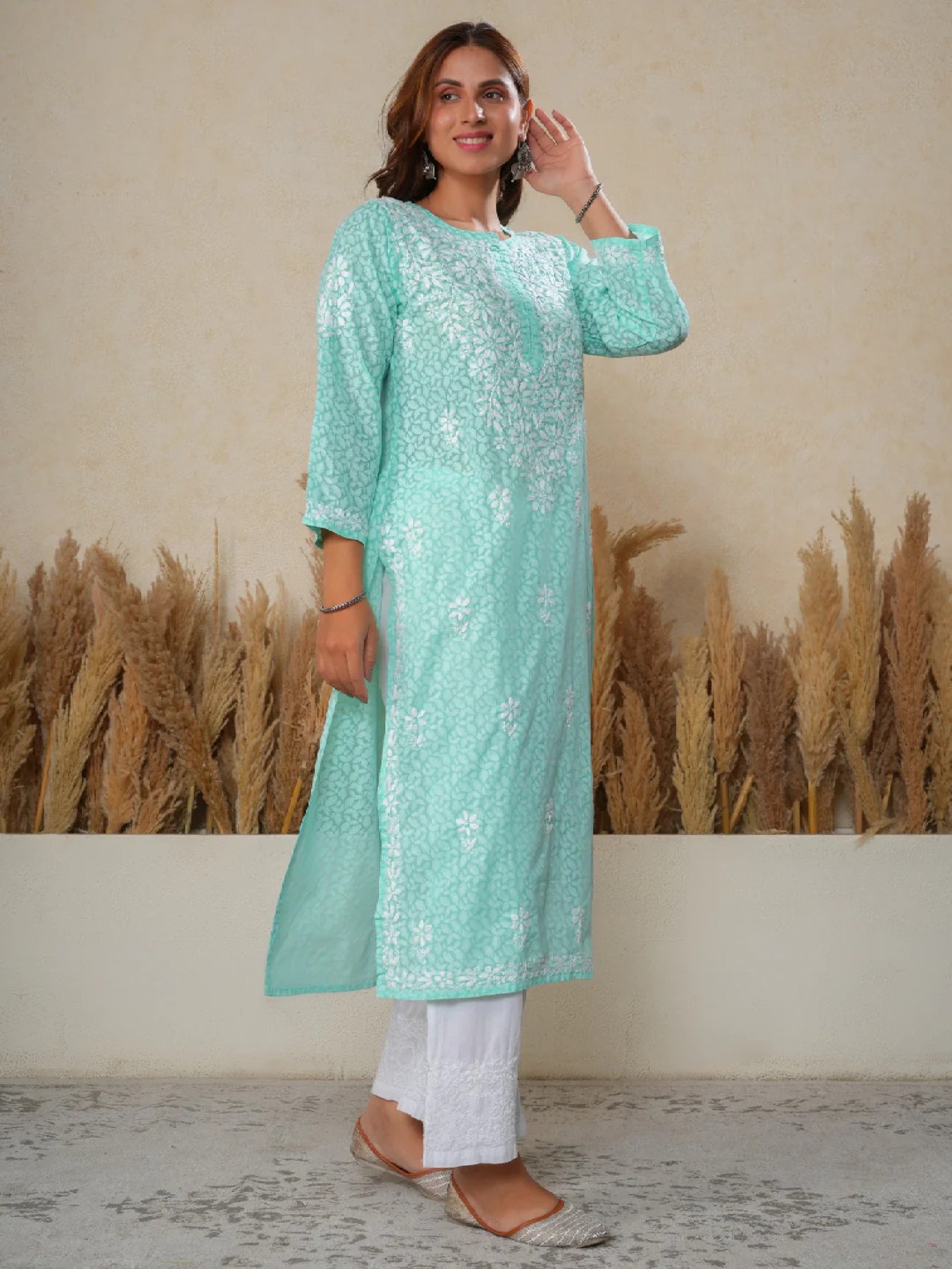 • By following these care instructions, your Zorba Creations Aadita Mulmul Cotton Chikankari Handwork Women's Floral Long Kurta - Aqua will remain timeless, elegant, and beautiful for years to come.